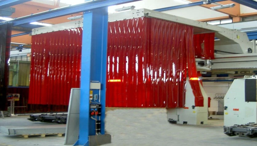 Seitlich an den Absaughauben sind Klemmleisten mit einer intelligenten Krallenaufnahme zur Aufhängung von Streifenvorhängen angebracht. Die Streifenvorhänge dienen der Kapselung bzw. der Einhausung der Emissionen. Sie sorgen für ein optimales Speichervolumen für die abzuführenden Emissionen und dienen zudem als Sichtschutz.